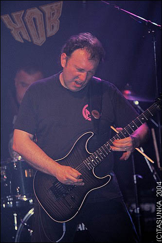 Pour le reste, j’aimerais participer à une interview d’un webzine ou magazine spécialisé sur la guitare uniquement. Là, je pense que le m’éclaterais, je peux passer des heures à discuter de guitare, sans m’épuiser sur le sujet !!!! En fait, je suis bien plus passionné par l’instrument que par le Metal en particulier. KOB est un groupe de Heavy Metal, parce que dans l’ensemble, on se voit mal jouer autre chose lorsque nous sommes réunis, l’apport de chacun dans le groupe fait que ça sonne Heavy Metal, c’est comme ça, je n’ai pas d’explication à ce sujet, c’est au feeling !!! Mais en ce qui me concerne, je n’écoute pas que du Metal, c’est aussi le cas d’autres membres du groupe, et c’est tant mieux, cela permet d’avoir un certain recul sur ce type de musique et peut-être d’éviter les clichés !!
