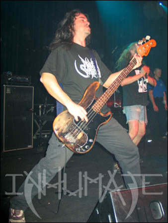 Fred. [L’air étonné et interrogatif] Personne ne m’a jamais dit ça et je crois que si peu de choses peuvent m’énerver, hormis la mauvaise foi, celle-ci en est une !!! Nous sommes un groupe underground qui revendique fièrement ce statut, n’en déplaise à quelques grincheux (qui sont jaloux dans le fond, rien de plus…). Pourquoi underground ? Tout simplement parce que nous nous autoproduisons, nous bossons comme des damnés pour que cela fonctionne et tout ce que nous avons réussi à faire nous l’avons fait SEULS !!! Alors je ne vois pas en quoi nous pourrions sortir de l’underground ??? D’un autre côté l’assimilation underground = mauvaise musique, musique de débutant, son pourri, pas de moyens, etc… soit quand même finir par disparaître ! Je reste persuadé que l’underground regorge d’excellents groupes !!! Il suffit de s’y intéresser un peu, d’être curieux et de fréquenter les concerts pour se rendre compte que des dizaines de groupes auxquels on offrirait de super infrastructures seraient capables de faire des concerts largement meilleurs que ceux que les critiques considèrent comme de stars, tout simplement parce qu’ils sont signés chez tel ou tel « gros » label. Pour revenir à ta question, INHUMATE ne quittera jamais l’underground parce que nous en sommes issus et contrairement à beaucoup de groupes (que je ne citerai pas par politesse…) nous n’oublions pas d’où nous sortons et nous considérons que nous avons pour mission d’aider ceux qui sont plus petits que nous !!!