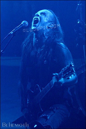 La soirée débute vraiment avec l'arrivée de BEHEMOTH. Clous, corpsepaints, cuir et visages démoniaques transforment rapidement la Loco en seuil de l'enfer. Inferno semble comme toujours se retenir de démolir sa batterie (faut dire il en impose derrière ses fûts!), Nergal harangue la foule pour plus de folie et de hurlements. Le public est conquis et l'ambiance monte au centre. Dommage que d'ici le son soit particulièrement inaudible. C'est avec peine que l'on reconnaît « Demigod » et « Antichristian Phenomenom », mais l'atmosphère sur scène nous empêche de décrocher du spectacle. On aura même droit à une exclu, nouveau titre de l'album à venir en juin 2007 dont le titre s'est perdu dans un beuglement... En tout cas la chanson est tout en force, vivement la sortie de ce The Apostasy ! Et déjà c'est la fin du show des polonais, qui n'auront pas eu plus de 45 minutes pour convaincre... laissant le public à lui même après un « Chant For Eschaton 2000 » apocalyptique.