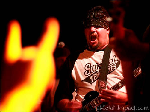 SUICIDAL…que voulez vous que je vous dise, je les aime depuis trop longtemps pour trouver quoique ce soit à vous dire. Et à en juger de la réaction de mes trois compères de ce samedi (Mon pote gratteux qui ne connaissait pas le groupe, sa copine réfractaire au Metal, et mon amie Sandrine pas particulièrement portée sur les décibels), ST a gagné la partie…