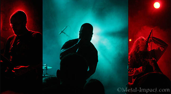 20 minutes c'est également la durée de la prestation de BENEATH THE MASSACRE. Les revendications du technicien aux commandes de la table de mixage ne seront, semble-t-il, jamais acceptées et le mouvement perdure. Mais la musique plus simple et massive des québécois en souffre moins. Une partie du public, qui les attendait, les incite à s'exprimer dans la langue de Voltaire afin de nous laisser gouter à cet accent d'outre atlantique que nous apprécions tant, avec la tolérance et le respect qui caractérise tant notre peuple. Jeu auquel ils ne se prêtent que frileusement avant de retourner à l'anglais, idiome de rigueur dès lors qu'il s'agit de Metal. Leur Death Metal teinté de Grindcore me semble un peu limitée musicalement mais très efficace. Leur chanteur au cou de taureau le déclame avec véhémence. Quelques brutes du public sont prises de mouvements irrépressibles et miment avec une conviction certaine des disciplines olympiques telles que le lancer du poids ou le saut en ciseaux. Particularité intéressante de ce groupe, un de leurs morceaux comprend le mosh part le plus lent de l'histoire du Death Metal. Si lent que c'est une gageure de marquer le temps d'un headbang assuré. Si lent que l'on peut à loisir aller pisser un coup ou siroter une binouze entre deux coups de baguette. (5/10)