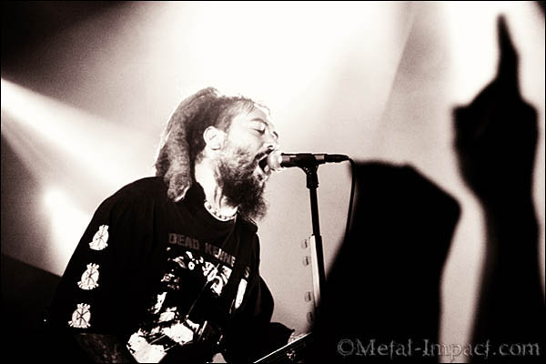 « Seek n’Strike » rassure quant au caractère belliqueux de la suite des évènements, et on déroule tranquille dans une ambiance survoltée jusqu’au passage fatal où les anciens classiques de la tribu de Belo Horizonte viennent pointer le bout de leur nez. Et hop, pas vu pas pris, « Refuse/Resist » embrase ce qu’il restait de fétus encore secs, et une folie douce s’empare des premiers rangs. C’est dans ces moments là qu’on regrette le temps béni où aux côtés de son frère, d’Andreas et de Paulo Jr, Max carbonisait les scènes européennes…Mais ne soyons pas médisants, car le line-up actuel de SOULFLY est plus que performant, et fait monter la mayo mieux que Maïté le dernier jour de ses règles !
