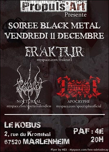 Groupes Présents au concert : NOCTURNAL (FRA), APOCRYPHE (FRA), FRAKTUR (FRA)