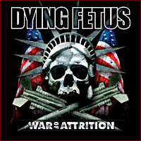 J'ai toujours plus ou moins vu DYING FETUS comme le rejeton bâtard de CARCASS et MACABRE, première époque (quoique je n'ai jamais été bien sur qu'il y ait eu une deuxième époque pour MACABRE !). C'est gras, gros, grand, et graveleux. Le petit dernier n'échappe pas à la règle. Le son de batterie est un non sens, les petites pirouettes harmoniques à la guitare sont les mêmes du début à la fin, et on a la sale impression d'entendre le même titre pendant 36 minutes. Mais on s'en fout ! C'est jouissif, parce que méchant et gratuit. Les membres du groupe n'ont jamais caché leur haine à toute appartenance mainstream, et on est d'accord avec eux. Et vous vous attendriez à des surprises ? Ben désolé, mais les FETUS restent honnêtes, fidèles à la ligne de conduite qui les guide depuis le départ, alors War Of Attrition, c'est du gros Death mâtiné de Grind, comme d'hab. La prod, en dehors de la batterie est excellente (vive Lars ULRICH !!), John Gallagher grogne comme jamais, et le groove est là. Je pourrais recommander dans un excès de zèle des titres comme "Unadulterated Hatred", pour sa lourdeur rythmique, "Ancient Rivalry" pour son petit coté MORBID ANGEL, ou encore "Raping The System" pour sa furie en forme de profession de foi. Car c'est bien de foi dont il s'agit. Inébranlable, comme un gros riff qui torture tes vieilles enceintes prêtes à rendre l'âme. Et c'est bien la seule que tu auras d'ailleurs. Celle de DYING FETUS est déjà réservée par le grand cornu depuis longtemps...