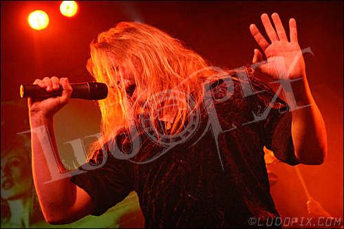 MYSTIC PROPHECY, encore un nom de groupe ridicule, mais une première partie somme toute d'assez bonne facture. De vieux briscards enthousiastes qui viennent ici défendre Fireangel, leur dernier album. Casquette sur le crâne et sourire niais de circonstance, Roberto Lapiakis, l'improbable chanteur grec de cette formation cosmopolite, ne tient pas en place et multiplie les poses « so heavy », juché sur les retours. Notons un bassiste pachydermique aux quatre cordes montées à l'envers, et deux bons guitaristes solo, qui délivrent un set honnête dont « We Kill You Die » ou « Paranoïd » emprunté à BLACK SABBATH, se révèlent comme les meilleurs moments. Le public joue le jeu à fond et l'accueil est plus que poli, les nombreux jeunes de l'assistance, surexcités, n'hésitant pas à donner de la voix ou improviser de petits mosh pits bien innocents...