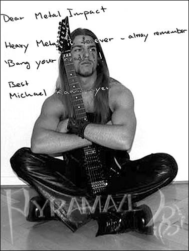 Metal-Impact. Avant de parler de votre nouvel album, peux-tu me dire quelques mots sur chaque membre du groupe ? Michael Kammeyer. Notre batteur, Morten, jouait dans un autre groupe néerlandais, AURORA, avant de commencer avec PYRAMAZE. Il est aussi le batteur de WUTHERING HEIGHTS, un groupe danois, et... c'est un excellent batteur! Il a été nommé l'un des meilleurs batteurs du monde par un magazine américain il y a 2 ans. Notre bassiste, Niels, est lui aussi un grand bassiste. Il a débuté a l'académie de musique au Danemark. Ensuite, il y a notre clavier, Jonah, qui vit à Atlanta aux Etats-Unis. Il est très jeune (22 ans seulement) mais il joue du clavier depuis toujours. C'est un de ces jeunes talents, un mec très sympa. Ensuite nous avons Lance King, notre chanteur, qui est un peu le "vieux" du groupe, il a beaucoup d'expérience, il a joué dans de nombreux groupes, et il est très connu de la scène Metal. Puis il y a notre nouveau guitariste, Toke, il nous a rejoint lorsque nous étions censés jouer aux Etats-Unis en 2004. Nous sommes devenus de très bons amis, et c'est un guitariste solo fantastique, alors nous avons décidé de faire de lui un membre permanent du groupe. Et puis, enfin, il y a moi, je suis aussi guitariste, et j'écris la plupart de nos chansons.