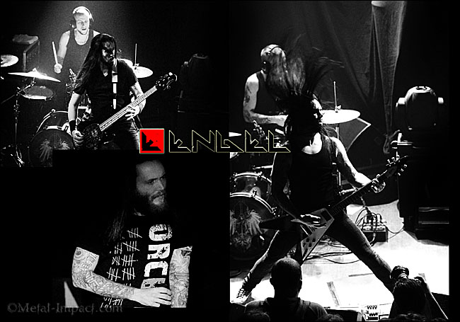 Si l'attitude est la clé, alors ENGEL a livré une performance qui a ravi le public. Délivrant une musique puissante à la lisière du Néo Death en vague dans les pays nordiques depuis la fin des 90's, AT THE GATES, SOILWORK ou IN FLAMES en tête de file, ENGEL a prouvé ce soir qu'il était un groupe d’ouverture de première bourre, et ceci malgré des gimmicks qui m'ont rappelé les plus grandes heures du Heavy Metal des années 80. Gageons que Marcus Sunesson et Steve Drennan ont du pas mal observer les pas de danse et les poses de certains duettistes allemands, tels Wolf Hoffman et Jörg Fischer ou encore Rudolf Schenker et Matthias Jabs... Sympathique au début, mais un peu trop récurrent, surtout en ce qui concerne le désormais cultissime "Feedback + index levé au ciel" de Marcus...