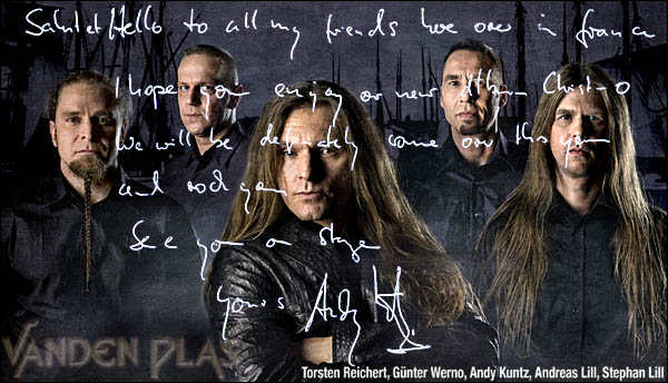 Après quatre ans d'absence, le célèbre groupe de prog allemand VANDEN PLAS revient enfin, avec un nouvel album « Christ O » au concept prometteur, puisqu'il s'agit de l'adaptation de l'œuvre d'Alexandre Dumas, "Le comte de Monte Christo". L'attente n'aura pas été vaine, car le contenu de l'album s'avère très efficace et de grande qualité ! Le groupe n'a toutefois pas chômé pendant ces 4 années, multipliant concerts et projets au théâtre, avec succès d'ailleurs, comme vous pourrez le découvrir au cours cette interview avec Andy, le chanteur.