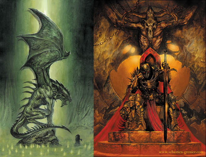 Sébastien. Mes influences sont multiples mais comme dit plus haut ceux qui m'ont vraiment marqué sont Frazetta, Bisley, Brom, Giger ...Certains travaux de Luis Royo ... Chez les français, Ledroit indéniablement ... La découverte de SPAWN et autres WITCHBLADE au milieu des 90's fait également partie des déclics ...