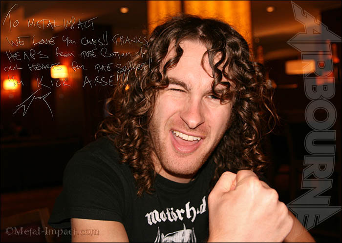 28 ans plus tard, deux autres frangins, australiens eux aussi, semblent suivre le même chemin. Le parallèle est flagrant, tant au niveau de la démarche que de la musique. AC/DC-AIRBOURNE, même combat ? C’est possible, mais la courbe ascendante des frères O’Keeffe parait diablement plus rapide que celle de leurs homologues. Attendus au Zénith au mois de Mars 2010, forts d’un nouvel album No Guts, No Glory encensé par la presse et encore plus efficace que leur effort initial, rien ne semble pouvoir les arrêter. Et même en pleine promo, Joël, que j’ai eu la chance de questionner, semble trépigner sur place et attendre mes questions l’écume aux lèvres pour pouvoir y répondre de la même manière qu’il chante ou joue de sa guitare, avec célérité et mordant. Accrochez vous à votre fauteuil, voici, dans ses propres mots, celui qui parle et qui riffe plus vite que son ombre, M. Joël O’Keeffe !