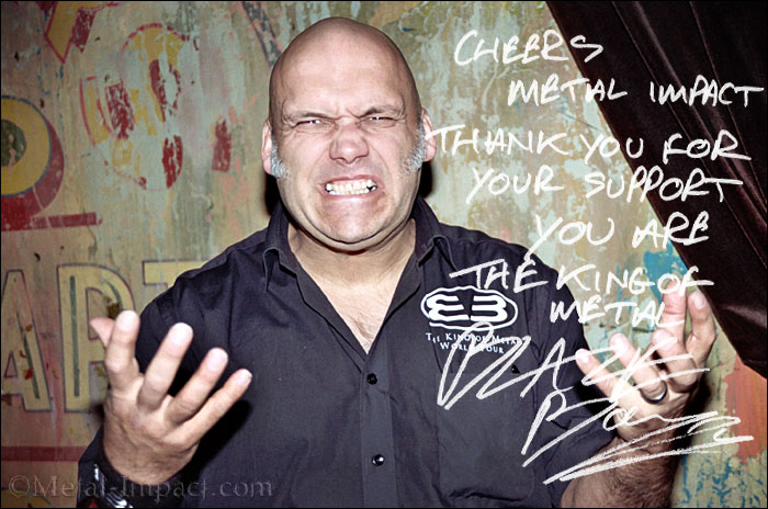 Dire que le destin de Blaze Bayley est chaotique est un doux euphémisme ! Depuis son départ forcé en 1999 d’un des plus grands groupes de Heavy Metal nommé IRON MAIDEN, Blaze fait preuve d’un courage et d’une ténacité hors du commun. Le personnage force l’admiration. Le bougre a tout vécu : des moments de gloire avec la vierge de fer qui l’ont conduit à se produire sur les plus grandes scènes du monde mais aussi les pires moments de déprime après son éviction et tout au long de ces dernières années ! Rien ne lui a été épargné et ce dès le début de sa carrière solo en 2000 ; pires encore les choses n’ont cessées de se dégrader malgré sa volonté et sa détermination à ne pas baisser les bras. Notre british a du tout affronter ; changement de label, instabilité notoire du combo et ventes en bernes malgré des galettes de grande qualité ! Pourtant sa foi pour défendre sa musique préférée est restée indestructible et ce malgré des drames qui ont failli avoir raison de ses forces et de sa raison ! Pouvoir poursuivre l’aventure est devenu un combat quotidien, une quête où il doit faire face jour après jour à l’adversité ! Son seul objectif a été de tout faire pour essayer de maintenir à flot un vaisseau prenant l’eau de toute part. Un modèle pour de nombreux musiciens qui sont épuisés au bout de quelques jours de tournée. Blaze a repris les choses en main et gère tout de A à Z : création de son propre label, ce qui lui permet de sortir ses albums dans des conditions optimales, merchandising et démarchage des tourneurs afin d’assurer un maximum de concert au quatre coin du globe. De quoi en épater plus d’un ! Et tout ça en assurant les concerts et les enregistrements d’albums. Un travail titanesque qui laisse pantois ! Après le split de son groupe début 2011, on aurait pu croire qu’il allait disparaitre corps et âmes et heureusement c’est exactement l’inverse qui s’est produit. Le bougre, après avoir retrouvé une nouvelle bande de gaillards pour l’accompagner, nous revient en pleine forme avec un nouvel album : King Of Metal. Un hymne en hommage à tous ceux qui ne l’ont jamais lâché. Et comme si cela ne suffisait pas, il en a profité dans la foulée pour reformer son premier groupe WOLFSBANE et enregistrer avec ses acolytes « Wolflsbane Save The World », un opus qui vaut son pesant d’or. Un vrai stakhanoviste du Metal. Le rencontrer est une rude affaire et relève du parcours du combattant non pas que notre Blaze se la joue Rockstar, c’est tout le contraire, mais l’organisation d’une interview est proche du chaos total.