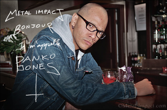 DANKO JONES est un groupe canadien qui nous vient directement de Toronto et qui a déjà quelques années de route derrière lui. Il faut dire que le combo s'est formé en 1996 autour de son leader incontesté Danko Jones qui est un vrai personnage, totalement atypique n'ayant pas sa langue dans sa poche et qui reste un fan dans l'âme. Sans véritable contrat discographique nos amis parviennent tout de même à sortir trois EP autoproduits entre 1998 (Danko Jones, Sugar chocolate) et 1999 (My Love Is Bolt). Le bougre est un hyperactif et totalement polyvalent, il ne se contente pas uniquement d'assurer le chant et la guitare mais anime aussi une émission de radio, travaille pour la presse musicale internationale et à même publié un album de Spoken Word en 2004 : The Magical World Of Rock. De quoi en laisser pantois plus d'un ! Le gang n'a pas eu un parcours facile et a réussi à se forger une excellente réputation scénique grâce à une volonté extraordinaire et des concerts incessants dans tous les endroits possibles et imaginables. Cette détermination leur a permis de décrocher son premier vrai contrat en 2002. Une signature chez Universal Canada et un contrat en poche chez Bad Taste Record en Europe leur permet de sortir Born A Lion qui est fortement influencé par le Blues et d'enchaîner les dates à un rythme effréné. Les DANKO s'offrent même le luxe d'ouvrir pour les ROLLING STONES sur une date en 2006. Malheureusement la lune de miel avec Universal va s'interrompre très rapidement (ils en garderont un gout amère et une rancune tenace envers la Music Business en général) et nos canadiens vont se retrouver à la rue ou presque. La réaction sera très rapide et ils signeront avec un nouveau label qui leur permettra de conquérir une bonne partie de la planète et de s'imposer en Europe... S'en suivent plusieurs albums : We Sweet Blood (2003), Sleep Is My Ennemy (2006) ou le gang distille un Rock Heavy agrémenté d'un zeste punk des plus féroce et qui leur assurera une solide réputation sur scène. En 2008, ils s'embarquent sur une tournée en ouverture de MOTORHEAD où ils recevront un accueil plus que favorable de la part du public. A cette occasion va naître une solide amitié entre Sir Kilminster et Danko qui se conclura par une participation de notre roi de la Rickenbacker dans le clip : "Full Of Regret". En 2010 sort un album qui surprend énormément une bonne partie de leurs fans où nos killers proposent un Hard Rock bien plus mélodique qu'à l'accoutumé. Danko a décidé de se mettre à chanter (sa spécialité étant à l'origine le chant hurlé selon ses propres termes). Son idée étant de rendre ainsi hommage à tous ses héros comme THIN LIZZY, KISS, VOIVOD, RAMONES, MOTORHEAD ou encore DEATH ANGEL. Pour cela le combo n'hésitera pas à faire appel à un producteur des plus réputés en la personne de Nick Raskulinecz connu pour son travail avec les FOO FIGHTERS ou ALICE IN CHAINS. Nos buveurs de sirop d'érable partent aussitôt en tournée avec GUNS N' ROSES, ce qui leur permet de jouer devant des foules immenses et conquérir de nouveaux fans. Cette série de concerts restera d'ailleurs un événement marquant pour Danko qui se fera le grand défenseur d'Axel Rose en toute circonstance. Même si l'album très bien accueilli par toute la presse spécialisée, nos aficionados optent pour un retour aux sources avec Below for The Belt et décident de retravailler avec leur producteur de toujours, Matt Dematteo, véritable quatrième membre de l'équipe. S'en suit un album truffé de bombes mélodiques destiné à rassurer tous les fans qui, semble-t-il, avaient étés désorientés par Never Too Loud. Après une tournée mondiale de plus d'un an, nos lascars sont de retour avec un nouveau dvd : "Bring on The Mountain", une véritable pépite pour tous les admirateurs du combo, et un nouvel album : Rock'n'Roll is Black And Blue qui s'annonce d'ors et déjà comme la suite logique de Below the Belt. Bref du Danko Jones pur jus qui devrait ravir tous ses fans. Avec une actualité aussi riche, Metal Impact se devait d'en savoir un peu plus sur ces deux sorties successives et c'est avec un plaisir non dissimulé que votre serviteur se rend au rendez vous fixé en plein Pigalle. Malgré les effets du décalage horaire (le kid arrivait directement de Toronto), rencontre exceptionnelle avec un rocker très sympathique, passionné et très affable et qui n'hésitât pas à me livrer quelques anecdotes croustillantes dont il semble raffoler. C'est à toi Danko !