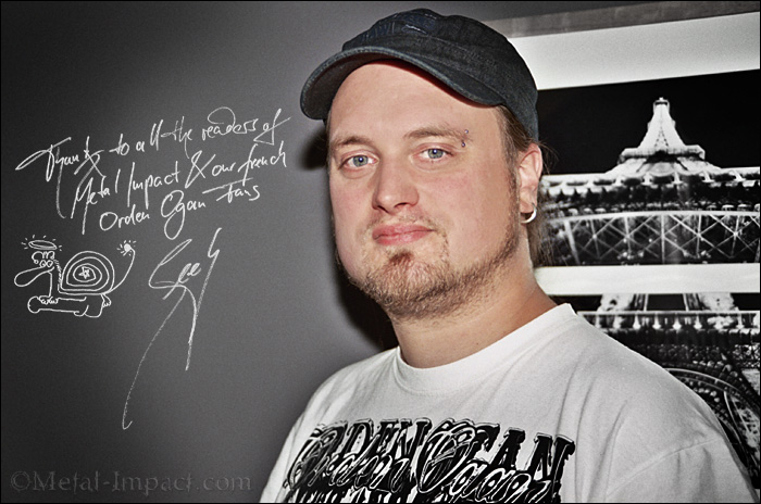 ORDEN OGAN, est-ce une appellation étrange et mystérieuse qui de prime abord pourrait évoquer un ordre sacré détenteur d’un pouvoir maléfique qui agit dans l’ombre pour éradiquer ses ennemis ou les sacrifices humains de ses adeptes seraient exigés par le grand ordonnateur qui exigerait une dévotion sans limite ? Ou est-ce un livre perdu au cours des siècles qui serait réapparu et qui livrerait le lieu où serait caché le mythique graal source de jeunesse éternelle ? Vous y croyez ? Mauvaise pioche ! On est bien loin de ces considérations hallucinatoires dues sans doute à une trop grande absorption de houblon un soir de concert ! C’est tout simplement le nom d’un combo qui est en pleine ascension sur le devant de la scène Métallique. Originaire d’Allemagne, les bougres ont su en quelques années s’imposer dans le petit monde fermé des Headbangers ! Il faut dire que depuis leur signature avec le label AFM, la carrière de nos teutons semble s’envoler et prendre une tournure qui s’avère très prometteuse. Les premiers émois du gang remontent à 1996, époque où les lascars étaient encore des ados pré pubères qui s’étaient mis en tête de faire un maximum de bruit dans leur garage. Mais la véritable naissance du combo se fera en 2008, date à laquelle Vale, leur véritable premier opus atterrit dans les bacs. Entre temps, Seeb et ses comparses écumèrent tous les clubs et fêtes de leur région afin de faire leurs armes. En 2004 déboule un premier EP, Testimonium A.D qui leur permit de se faire remarquer par des professionnels et des médias. A partir de cette date, la machine était lancée à toute vapeur et on savait qu’il allait désormais falloir compter sur eux dans les années à venir. Après Vale, un premier essai très concluant, tout s’enchaîna à la vitesse de la lumière et nos valeureux guerriers délivrèrent une galette qui fit immédiatement sensation : Easton Hope, véritable manifeste de Power Metal fortement influencé par des pointures comme BLIND GUARDIAN, RUNNING WILD ou encore GAMMA RAY. Une vraie réussite qui se démarque par un soupçon folklorique et une efficacité redoutable qui font pâlir de jalousie de nombreuses formations de la même génération. Easton Hope marque une étape décisive pour ORDEN ORGAN qui va réussir en peu de temps à s’imposer sur la scène européenne en ouvrant pour FREEDOM CALL, GRAVE DIGGER ou encore TIAMAT ce qui s’avérera pour eux comme une véritable passe d’arme vu la différence de style pratiqué par les deux groupes. Le point d’orgue de cette épopée fut certainement leur participation à de nombreux festivals prestigieux comme le Rock Hard Festival, le Bang Your Head ou encore le célèbre Wacken Open Air où nos buveurs de bières en profitèrent pour immortaliser l’évènement sous la forme d’un dvd disponible avec l’édition limité de To The End. Ces nombreuses dates enchaînées tout au long des années 2011/2012 et la pression qui s’en suivit provoquèrent très vite une scission au sein d’ORDEN OGAN. Deux des membres abandonnèrent le vaisseau ne pouvant concilier vie privée et tournées incessantes. Un délestage de cette ampleur aurait pu signifier la disparition corps et âmes des derniers rescapés ! Que nenni, il n’en fut rien, bien au contraire. Le capitaine Seeb, véritable meneur de troupes su réagir au plus vite afin de remettre le navire à flot. Il faut dire que Sebastien Levermannn de son vrai nom est un véritable homme orchestre doté d’une énergie exceptionnelle qui lui permet d’affronter toutes les tempêtes quelles qu’elles soient. Notre Seeb, comme il aime être appelé, est une énigme absolue cumulant les rôles de chanteur, guitariste, compositeur, producteur, ingénieur du son, il s’occupe même du mixage à ses heures perdues. De quoi donner le tournis ! Une polyvalence impressionnante qui font de lui le seul et unique maître à bord, ce qui lui permet de contrôler tout de A à Z. ORDEN OGAN est sa chose c’est évident et lui seul peut décider de son avenir. Après un Easton Hope de haute volée, la question était de savoir si nos germains allaient être capables de confirmer. A l’écoute de To The End le doute n’est pas permis et nous sommes rassurés dès les premières notes. La nouvelle cuvée surpasse toutes nos espérances les plus optimistes. Nous tenons entre les mains une perle de Metal mélodique à l’allemande qui ne peut que réjouir tous les fans qui les suivent depuis leurs tous débuts. Une véritable déflagration qui, malgré les nombreux soucis personnels rencontrés par le leader Seeb, est encore plus forte que la précédente ! Autant vous dire que lorsque l’opportunité de rencontrer Seeb s’est présentée à moi, aucune hésitation n’était possible. Il me fallait absolument en savoir plus sur le bonhomme et son ORDEN OGAN. Le personnage s’avère très sympathique, jovial et accueillant, un cocktail parfait pour une interview. Un bon moment avec le Terminator du Metal ! C’est à toi Seeb !
