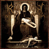 Faut-il vraiment attendre les premières atmosphères, presque religieuses, de « Blood Of The Saints » pour en avoir le cœur net ? Un bref coup d’œil à cette pochette, empreinte d’un blasphème très imagé, suffira à nous prouver que Malediction est tout, sauf une déclaration d’amour. RAGNAROK est, à mon goût, un des derniers représentants en activité (en compagnie de TSJUDER, BEHEXEN ou SETHERIAL) d’un Black à la mentalité old-school qui ne s’est pas renfermé sur lui-même quand l’heure de faire sa propre révolution musicale est arrivée. Très différent d’un Arising Realm ou même d’un Collectors Of The King (pourtant très contemporain), cet album véhicule sans discontinuer la puissance d’un Black Metal ascendant brutal, associée à l’authenticité de la première vague. Il y a à la fois un grand souci d’honnêteté musicale dans leur jeu, mais également une certaine forme d’ouverture, très discrète, qu’on retrouve dans le motif mélodique un peu sarcastique de « Necromantic Summoning Ritual » ou dans l’introduction incroyablement Heavy de « Dystocratic ». Fidèles à l’image qu’ils reflètent, ces Norvégiens sont sectaires et traditionnalistes, et les 90% de Malediction nous renvoient cette image en pleine face. Pourquoi ? Parce que les tempos n’ont aucune retenue, parce que ça blaste à 200 à l’heure pendant 45 minutes, parce que les riffs très saturés de Bolverk sont vecteurs d’une frénésie qui colle bien au jeu de batterie bruitiste de Jontho. Tout ça est très carré, très bestial, très « ivole Black ». Ça donne même envie d’aller décimer un troupeau d’agnelles en chaleur et de se taper un water-polo dans le bain de leurs tripailles, mais franchement, à quoi bon ? Ce que je veux dire, c’est qu’on connaît le Black Metal et qu’on a l’impression de le connaître encore plus quand il est si violent et si bestial. Quelle pierre apportera ce disque à l’édifice ? Et pourquoi cette inflexibilité, cette rigidité presque cadavérique, nuancée de variations rythmiques à peine perceptibles ? Les transitions sont inexistantes et ne parlons pas de la musicalité. RAGNAROK en met si peu dans son Black… Ce n’est certainement pas pour qu’on l’évoque. Au-delà de l’envie de se désintégrer les tympans ou, pour les puristes du genre, de passer un excellent moment, l’intérêt de Malediction est limité. Inaccessible mais pas que. Cet album, qui succède à un Collectors Of The King, il faut le dire, beaucoup plus inspiré, est d’une confondante médiocrité pour une formation qui nous avait habitué à la présence d’une forme de transcendance dans sa musique. Ici, l’âme est simplement broyée, les sentiments annihilés, la compassion exterminée par la puissance de ce feu-éclair qui s’éteint aussi vite qu’il s’est allumé. Et de la part de RAGNAROK, ce vil suppôt de Satan, c’est quand même une petite surprise.
