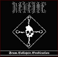 Et si musicalement, même si le terme n’est pas forcément idoine, Scum.Collapse.Eradication ressemble à une mixture compacte de Noise Core et de Raw Black Metal, le mélange est quelque part séduisant. Un peu comme si les deux premiers CARCASS percutaient de plein fouet un vieux BLASPHEMY. Mais rien de plus.