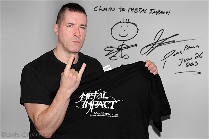 ANNIHILATOR s'est formé il y a pratiquement trente ans (en 1984 très exactement) et nous vient du Canada, plus précisément d'Ottawa. Ils font partie des vétérans qui ont réussi à traverser les décennies sans jamais se renier, bien au contraire ! Ils appartiennent au club très fermé des légendes du Thrash au même titre que METALLICA, EXODUS, MEGADETH ou encore TESTAMENT. Impossible de passer à côté d'ANNIHILATOR ! Si leur parcours n'a pas été aussi glorieux que certains de leurs confrères c'est certainement dû au fait qu'ils ne sont pas issus de la côte ouest des Etats-Unis. Pourtant, ils ont réussi à graver quelques pépites indispensables à tout Metalleux qui se respecte. Leur histoire débute au début des années 80 lorsque Jeff Waters décide de s'allier à John Bates afin de faire un peu de bruit dans les chaumières canadiennes. Ils produiront trois démos qui leur permettront tout juste de se faire remarquer sur la scène locale. Mais la véritable aventure débutera en 1987 lorsque Jeff Waters quittera Ottawa pour Vancouver, un choix qui sera décisif pour la suite de sa carrière. Exit John Bates, notre ami Jeff choisira Randy Rampage, ancien bassiste chez D.O.A, comme chanteur et signera rapidement un contrat avec le label Roadrunner. Pendant deux longues années, il se consacrera à l'enregistrement d'Alice In Hell, un album qui allait devenir une des pierres angulaires du Thrash Metal. Un véritable chef d'œuvre qui, aujourd'hui encore, fait référence. Le succès sera immédiat et les ventes s'envoleront alors que le combo met les USA à feu et à sang aux cotés de TESTAMENT. Malheureusement Randy Rampage quittera le gang au retour des la tournée, préférant se consacrer à un travail plus stable. Jeff ne baissera pas les bras et dénichera la perle rare avec Coburn Pharr, issus tout droit du mythique OMEN. Ils enregistrent ensemble un autre classique Never, Neverland, qui déboule dans les bacs en 1990. Là encore c'est une réussite totale qui s'inscrit sans équivoque au panthéon du Metal. Un must qui va leur permettre de sévir aux quatre coins du monde et d'ouvrir en Europe pour JUDAS PRIEST sur le Painkiller Tour aux cotés d'un petit groupe qui commence à faire parler de lui, PANTERA. Nos lascars signeront dans la foulée un contrat avec Sony aux USA. Tout semble donc se passer au mieux pour nos canadiens et on se demande qui pourrait les empêcher d'atteindre les sommets. Mais Coburn Pharr quitte le navire après cette tournée d'anthologie ! Il sera remplacé pendant un laps de temps par Aaron Randall qui assurera les parties vocales du troisième opus, Set The World On Fire, qui s'avérera nettement plus commercial, sans doute pour conquérir le marché US. Ce sera un flop et ANNIHILATOR se fera jeter par Roadrunner, victime de la vague Grunge qui déferle sur la planète. Jeff Waters se retrouvera seul et décidera d'enregistrer King Of The Kill par lui-même, assurant à la fois le chant, les guitares, la basse et la production. Un challenge monumental qu'il passera haut la main. C'est d'ailleurs à cette époque qu'il construira son propre studio, le Watersound Studio dans lequel il enregistrera toutes les futures galettes. On n'est jamais mieux servi que par soi même deviendra sa devise puisqu'il en sera de même pour Refresh The Demon qui sort en 1996, suivi l'année suivante de Remains. Sa carrière semble alors en déroute et notre buveur de sirop d'érable décide alors de réunir le line-up de Alice In Hell pour produire Criteria For A Black Widow qui marque un véritable retour aux sources, du grand ANNIHILATOR qui sera salué par la critique. Toutefois, les problèmes vont s'amonceler et la tournée sonnera le glas de la réunion triomphale. Les musiciens quitteront un à un le vaisseau et seront remplacés par différentes guest pour assurer les dernières dates ! Jeff, une fois de plus, continuera sa route en solitaire réussissant toujours à sauver les meubles avec des opus de qualité comme Carnival Diablos (2001) ou Walking The Fury (2002) dont le chant sera assuré par Joe Comeau. Ces va et vient permanent auront des conséquences catastrophiques, ANNIHILATOR sera condamné à ne donner que très peu de concerts durant plusieurs années. Il faudra l'arrivée du sauveur Dave Padden pour qu'ANNIHILATOR redresse la barre. All For You sortira en 2004 suivi dans la foulée par Schizo DeLuxe, deux manifestes Thrash impitoyables qui remettront les pendules à l'heure. Cette fois-ci, Jeff Waters a trouvé le maillon manquant et enregistre METAL, un disque avec une pléiade d'invités prestigieux qui viendront lui prêter main forte : Jeff Loumis NEVERMORE, DANKO JONES, Michael Amott et Angela Gossow de ARCH ENEMY ou encore Corey Beaulieu de TRIVIUM pour n'en citer que quelques uns. Un véritable hommage rendu à Jeff Waters qui a eu une influence déterminante sur leur musique. Cette année sera fastueuse, ANNIHILATOR reviendra sévir pour une longue série de concerts sur les terres européennes. En 2010, l'opus éponyme ANNIHILATOR ne fait que confirmer l'efficacité légendaire du gang à la feuille d'érable qui sera invité au Hellfest la même année. Il en profitera pour écumer les festivals au cours de l'été. Cerise sur le gâteau, ils se produiront de nouveau au Canada ainsi que dans le nord des Etats-Unis après 18 ans d'absence, un signe qui ne trompe pas. Fort de cette nouvelle stabilité le duo artistique se remet à l'ouvrage et enregistre Feast, une nouvelle bombe Thrashisante des plus redoutables ! Face à un tel opus, Metal Impact se devait de faire le point avec le Maître Jeff Waters sur ces 29 années dévouées au service du Metal. Un vrai sacerdoce q'il a défendu contre vents et marées sans jamais abandonner malgré les nombreuses difficultés. C'est un guitariste fatigué mais heureux d'être dans la capitale pour parler de son nouveau petit qui se prête au jeu des questions/réponses. Magnéto 