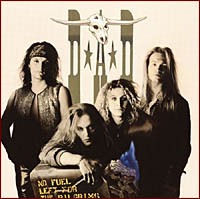Du début au milieu des années 80, même avec d'évidentes qualités musicales, les lascars ne quittèrent que très rarement leur pays, et si le label Mega offrit à la population leurs deux premiers disques, Call of The Wild et D.A.D Draws a Circle, Minnie ne fit jamais le trajet pour leur servir un café déguisée en soubrette. Sorte de Country Punky, bien jouée mais sans étincelle, les quatre rapetous du Hard Rock démarraient doucement leur carrière de bandits Rock de grand chemin, jusqu'à cette belle année 1989, où les portes du show business s'ouvrirent en grand devant eux... Ayant appris quelques leçons durant cette quasi décade, les frères Binzer, Stig et Peter, avec le flair d'un Picsou des grands jours mirent leurs économies dans un bas de laine, et sentant l'inspiration monter, accouchèrent enfin du disque dont on les savait capables, le grandiose et rigolard No Fuel Left For The Pilgrim. Si ce dernier sortit tout d'abord sous leur nom original, ils le raccourcirent rapidement pour éviter de reverser l'intégralité de leurs gains sur trente ans aux copains de Donald (ce qui fait de ce pressage original un joli collector), et après tout, ils n'eurent pas tort. Ok, la blague était drôle, mais cette fois-ci, la musique se suffisait à elle même.