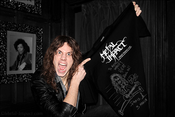 Si EUROPE et TREAT ont dominé le marché suédois pendant de nombreuses années, H.E.A.T un autre combo du même giron semble s'imposer depuis quelques temps et vouloir assurer leur succession. Le gang a débuté en 2007 et pratique un Hard Rock mélodique des plus classiques mais d'une redoutable efficacité grâce notamment à des refrains très accrocheurs qui déambulent sans discontinuer dans votre cerveau. Tout a été très vite pour eux puisque leur premier opus déboule dans les bacs en 2008, ce qui leur permet de tourner intensivement en ouvrant pour des légendes comme Alice Cooper ou encore THIN LIZZY. En 2009, ils ouvrent pour EDGUY sur toute leur tournée européenne et participent au concours de sélection de l'Eurovision avec le morceau "1000 Miles" qui deviendra très rapidement un hit en Suède et leur offrira une couverture médiatique exceptionnelle. Leur deuxième album Freedom Rock confirme qu'ils ne sont pas là par hasard et qu'il faudra désormais compter sur eux. Pourtant si en apparence le combo semble aller pour le mieux, c'est loin d'être le cas en interne. Suite à de nombreuses tensions, leur chanteur Kenny Leckremo quitte définitivement le navire en 2010 laissant H.E.A.T dans le désarroi le plus total. Un vrai coup dur qui aurait pu leur être fatal. Heureusement, nos suédois ne se laissent pas abattre et vont se mettre très vite à la recherche d'un remplaçant. Après de nombreuses auditions, ils découvrent la perle rare en la personne d'Erik Grönwall, le gagnant de l'émission de télé réalité The Swedish Idol. Celui-ci est convaincu d'entrée par le potentiel de H.E.A.T et choisi de renoncer à une carrière solo pour intégrer la formation. Après le recrutement de Erik, tout va aller très vite et nos amis signent un contrat avec Gain/Sony Music. Un vrai plus qui va leur offrir l'opportunité d'entrer en studio avec Tobias Lindel, un producteur de renom qui a notamment travaillé avec EUROPE. Ils enregistrent avec lui leur troisième galette (Adress The Nation) qui va leur permettre de révéler tout leur potentiel et de tourner intensivement en Europe. Ils participent aussi à de nombreux festivals dont le légendaire Firefest et s'embarquent pour une tournée dantesque en Chine qui leur laissera un impérissable souvenir. En 2013, ils retournent en studio avec Tobias Lindell afin de donner un digne successeur à Adress The Nation alors qu'au même moment Dave Dalone, le deuxième guitariste, quitte la formation après six ans de bons et loyaux services. Il ne sera pas remplacé, Eric Rivers assurant dès lors toutes les parties de guitares seul, que ce soit sur scène ou en studio. Tearing Down The Wall sort en mars 2014 et reste dans la ligné des précédents méfaits en offrant un Hard Rock de grande classe puissant et racé qui lorgne vers le Rock Us. Profitant de leur passage à Paris pour assurer la promotion de leur petit dernier, MI a pu s'entretenir avec Eric Rivers guitariste et fondateur de H.E.A.T. Rencontre avec un garçon sympathique, très enthousiaste et visiblement très heureux d'être à Paris. Magnéto Eric, c'est à toi !