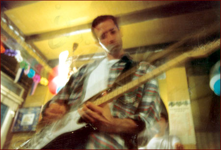 David. J'ai 2 guitares électriques : une Washburn N4 (modèle signature Nuno Bettencourt) avec laquelle j'ai enregistré tout l'album, et une Musicman (le modèle Petrucci 6 cordes avec micro Piezzo) que je me suis payé il y a quelques mois. Pour le live et les répètes je me branche sur un Tubefex Peavey (préampli/multi-effets), le tout branché sur un ampli Marshall. Pour l'enregistrement, je branche ma guitare sur un Pod Line 6 et le son est enregistré tel quel.
