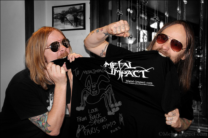 Spider. Oui, c'était génial pour nous. Je crois que le public a particulièrement aimé. C'est un peu un honneur de jouer avec eux. L'Olympia représente une histoire incroyable, il y a tant de grands groupes qui sont venus jouer dans cet endroit depuis les années soixante. Sur cette tournée, ça va être le plus grand show et de loin que nous allons donner. Nous souhaitons prendre chaque personne du public un par un afin qu'il devienne fan de BLACK SPIDERS.