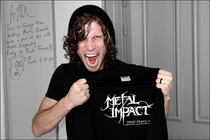 NOTHING MORE est la preuve vivante que la volonté et la ténacité sont des qualités indispensables pour tout combo qui se respecte. Totalement inconnu en France il y a quelques mois, ces texans de San Antonio ont réussi grâce à leur tout nouvel opus éponyme à se faire un nom aux USA, l'Europe ne saurait tarder vu la motivation impressionnante de nos rockers américains. NOTHING MORE, c'est l'histoire d'une bande de garnements qui se rencontrent sur les bancs du lycée et qui décide de former ce qui va devenir NOTHING MORE. Ils n'hésitent pas à tout quitter pour réaliser leur rêve, un choix qui sera décisif pour la suite de leurs aventures et au final payant au regard de leur succès outre atlantique. Un véritable sacerdoce car le parcours sera long et difficile, nos américains passant le plus clair de leur temps sur les routes jouant partout où on voulait bien d'eux dans des conditions plus que précaire. La galère sera leur quotidien tout au long de leur périple initiatique à travers les USA qui durera plusieurs années. C'est durant ces années de vache maigre que le combo peaufinera son jeu de scène et deviendra au fil du temps redoutable en concert. Seuls, ils produiront quatre albums dont ils assureront aussi la distribution, une méthode artisanale qui finira par porter ses fruits. En 2013, ils sont repérés par Allen Kowac et signent dans la foulée sur le prestigieux label Eleven Seven Music (SIXX:A.M., MÖTLEY CRUE, HELLYEAH). Ils rentrent en studio immédiatement pour concocter leur nouveau méfait, un manifeste de Metal moderne mélangé à du Rock progressif auquel s'ajoute une touche Pop non négligeable qui s'impose immédiatement dans des refrains d'une redoutable efficacité. Des morceaux taillés pour les radios US destinés à affoler les ados en mal de reconnaissance. Un créneau qui semble leur réussir à merveille au vu de leur récent succès au pays de l'oncle Sam. Nos texans font toutefois preuve d'une réelle originalité et d'une puissance inégalée dûe à une expérience scénique développée au cours de nombreuses années de tournées. Un réel talent d'écriture qui s'impose totalement sur cette nouvelle galette. C'est à l'occasion de leur passage à Paris que votre serviteur a pu soumettre à la question Jonny Hawkins, chanteur et leader de NOTHING MORE. Entretien avec un personnage des plus sympathique, visiblement heureux de découvrir la capitale pour la première fois et très fier de NOTHING MORE. Magnéto Jonny, c'est à toi !