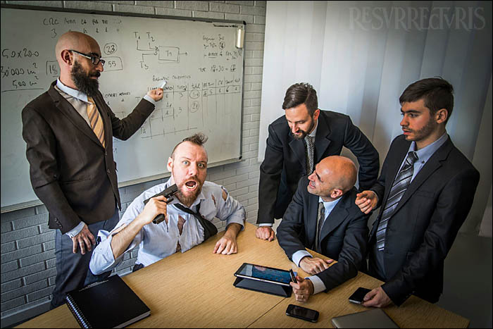 I had this idea to represent how it is today to have a working position in a multinational corporation or a mid-sized company. You know, you have a good job that gives you financial stability and all your material problems are solved, so you should be happy and everything. Still my personal experience told me that there is something more beneath the facade.